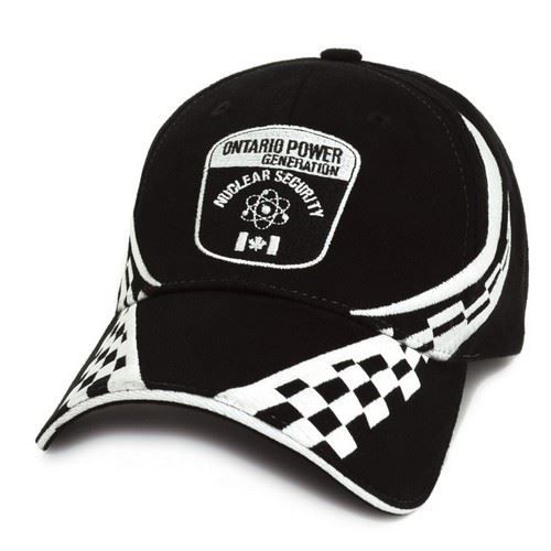 Structured 6-panel with pre-curved peak.Racing embroidery design with sandwich peak.