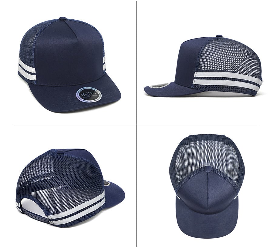 This up market, high profile A frame striped trucker cap with deep fit is great for all occasions. This style features a stretch fit elastic sweatband for ultimate comfort. Removable Peak Sticker. SIZE: OSFM PANELS: 2 CONTENTS: Polycotton/Mesh. Side Stripes CLOSURE: Plastic Snapback